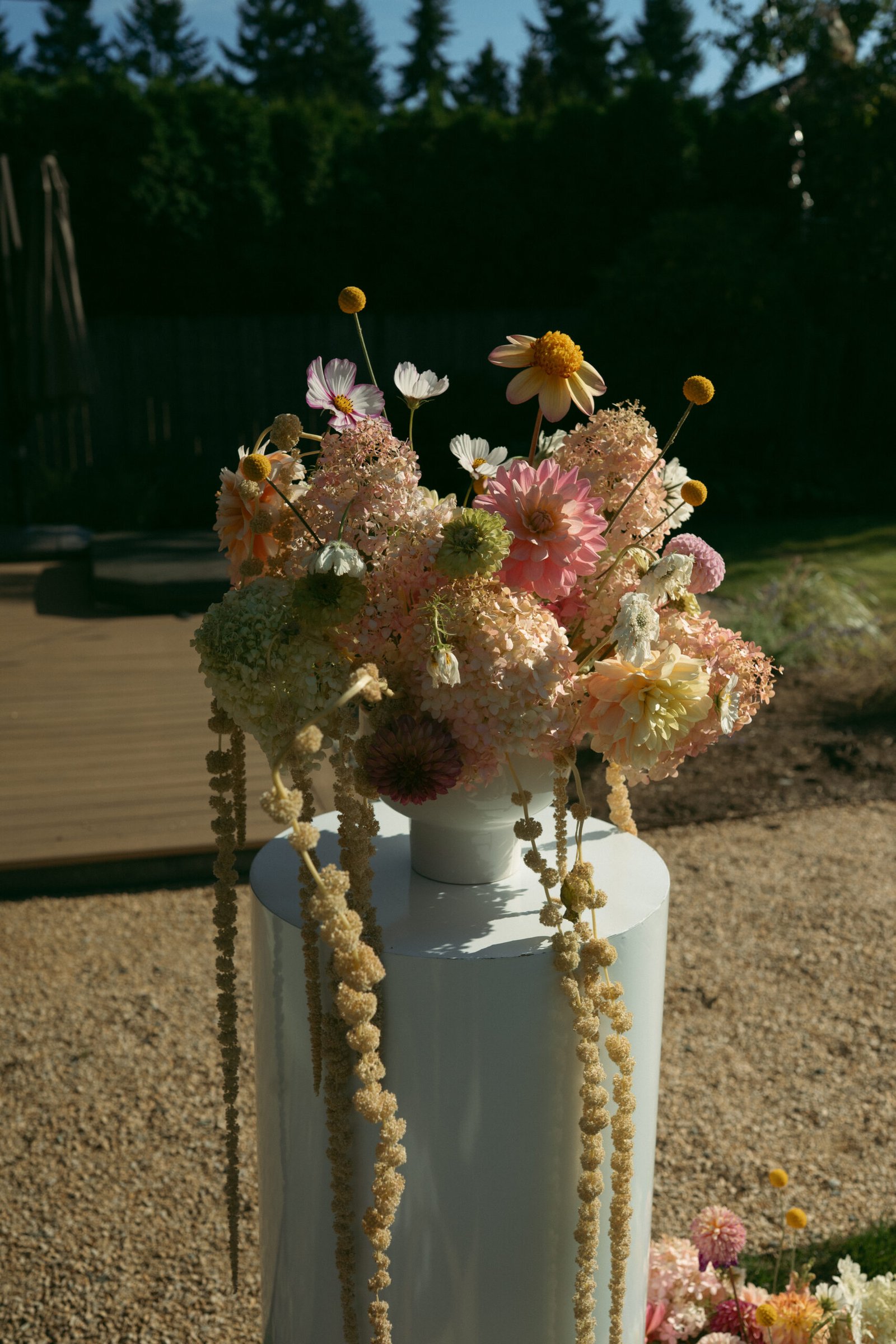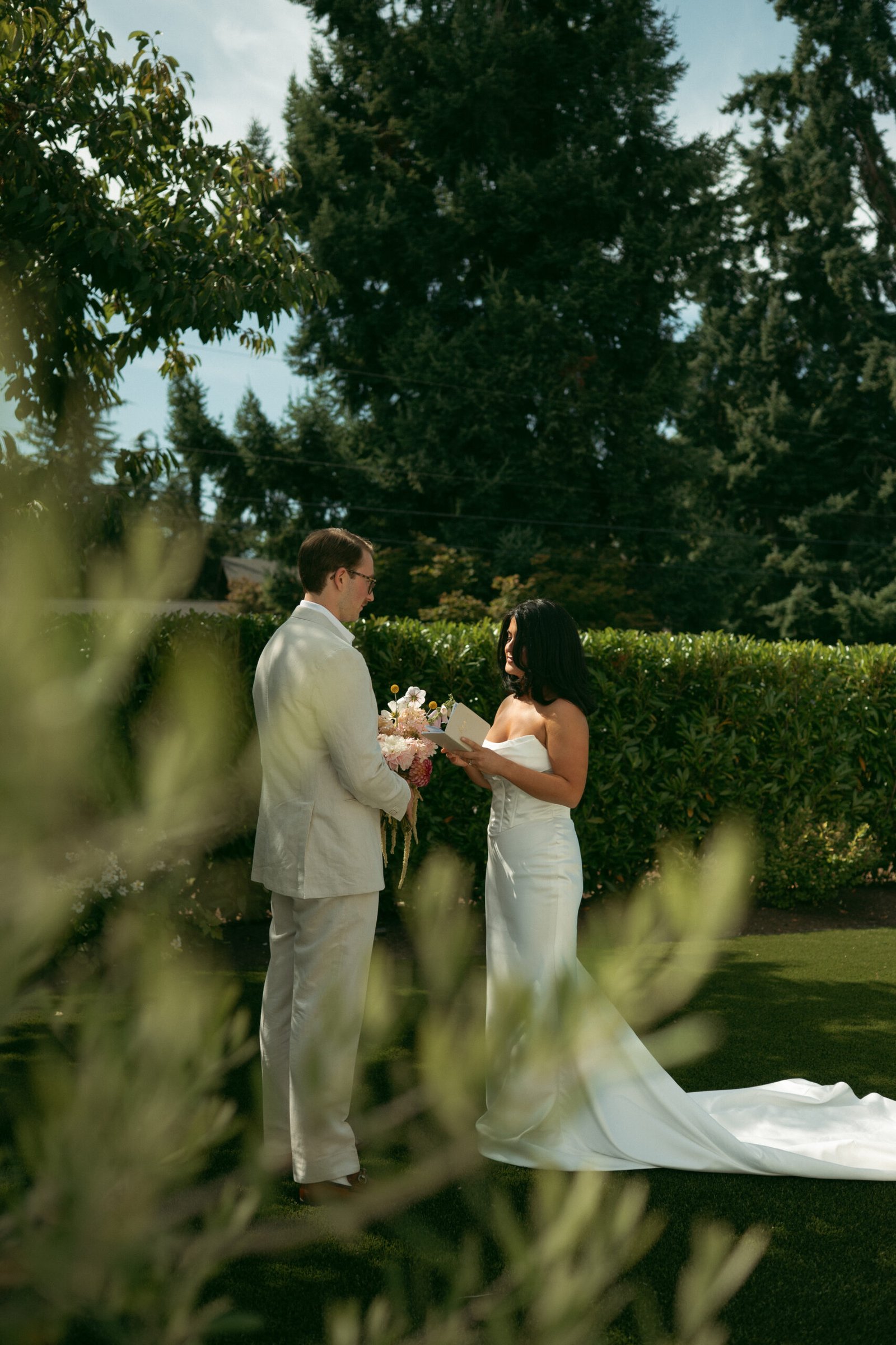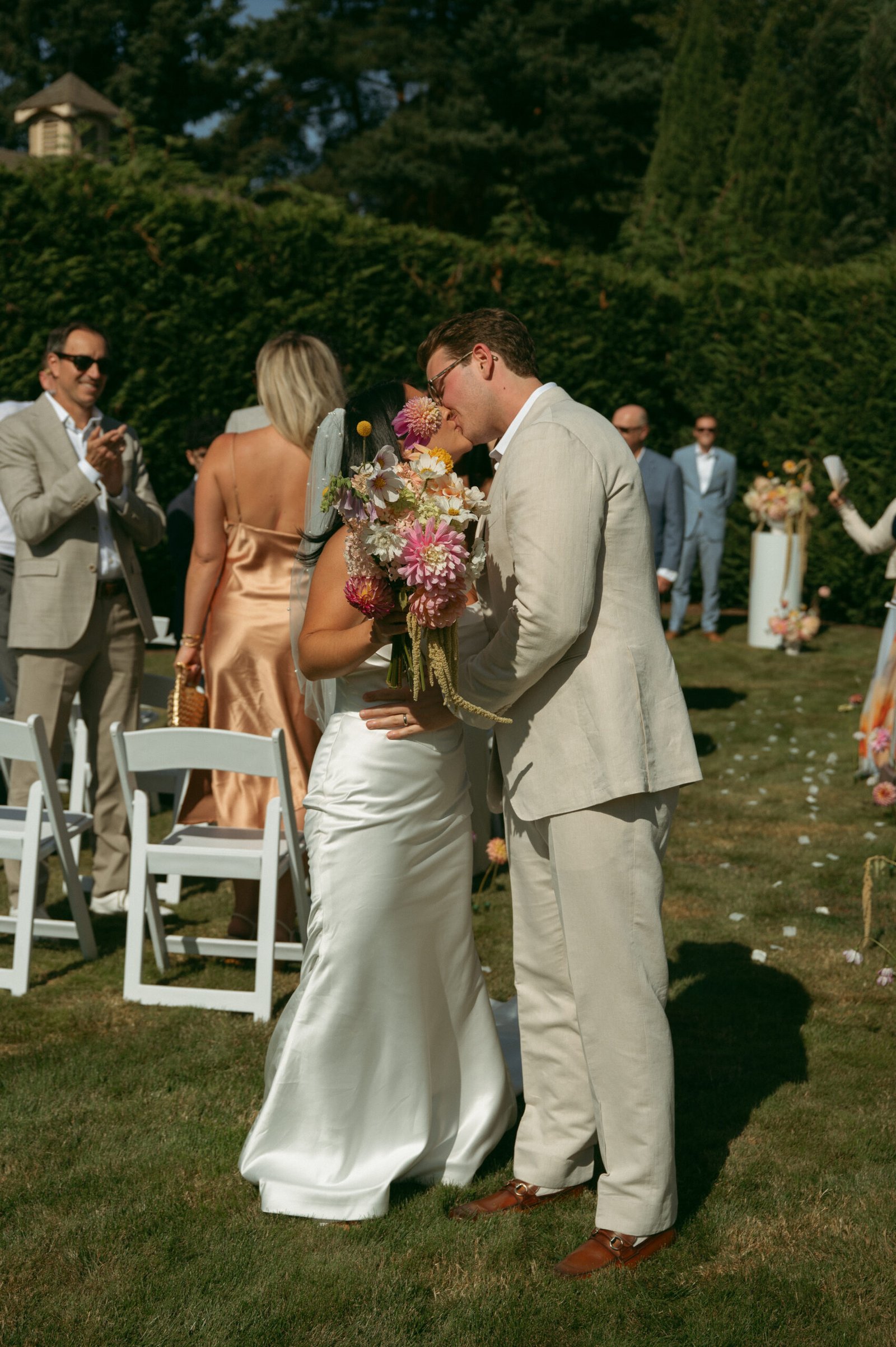 A romantic garden wedding surrounded by soft summer light, lush florals, and an intimate, effortless atmosphere. We styled their day with natural textures, warm tones and thoughtful details that complemented the beauty of the outdoor setting.